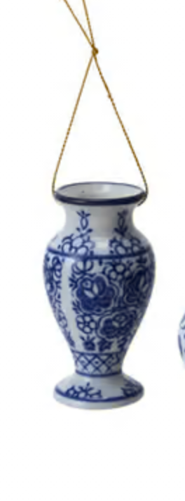 Stoneware Urn/Vase/Teapot/Teacup Ornament with Blue Ribbon, 4 Styles sold separately
