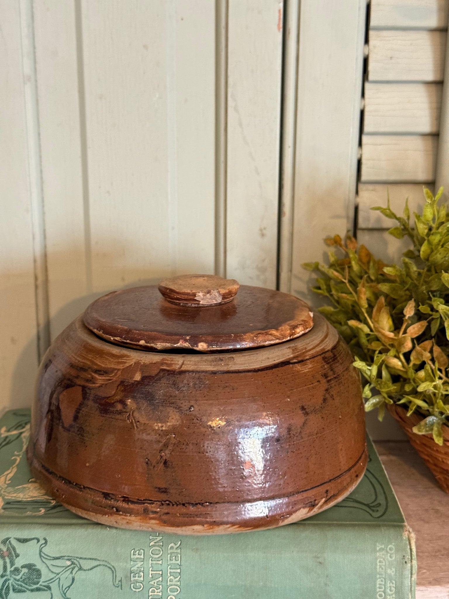 Antique Pottery Crock with Lid